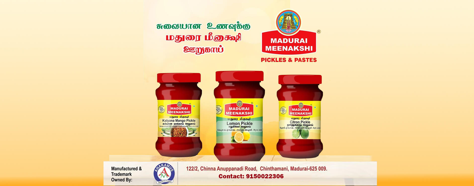 Madurai Meenakshi Appalam is a Trademark manufacturer and certified seller, Our South Asian Mouth watering pickles known as achar are the perfect blend of authentic & traditions. Buy tasty delicious pickles online from Madurai Meenakshi Pickles